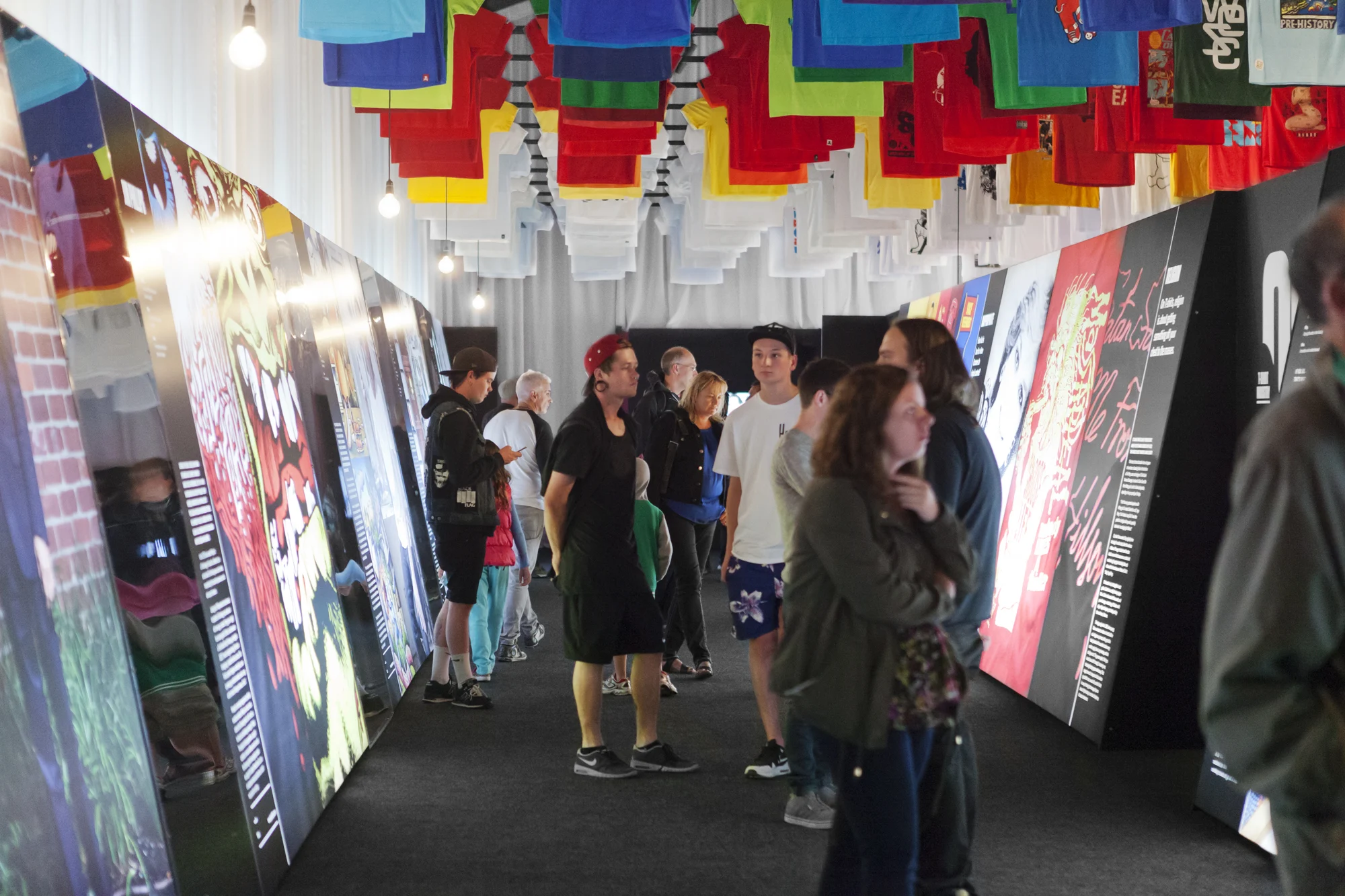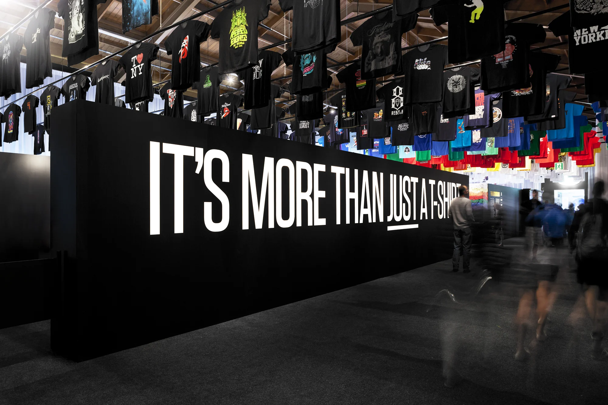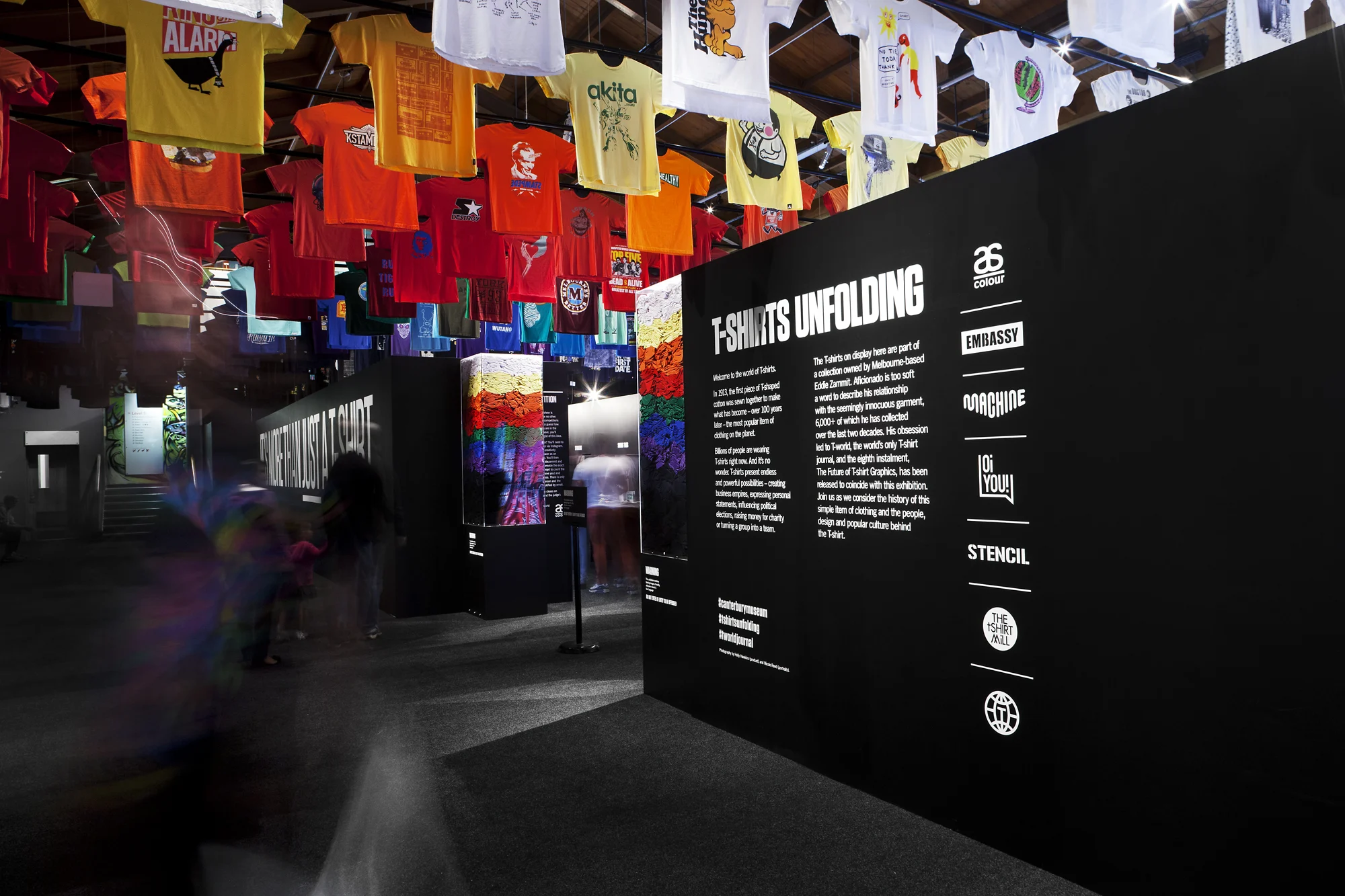 The exhibition’s purpose was part of a larger street art festival by Oi YOU! called Spectrum, a celebration of street art. The specific content showcased an exploration of T-shirt culture including featured artists, brands, designers, screen-printers and content aimed at elevating the humble cotton tee from wardrobe status to an international museum.
